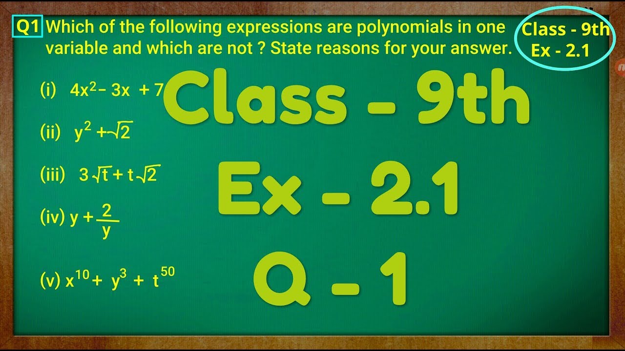 Class 9th Ex 2 1 Q 1 Polynomials Maths Cbse Ncert Youtube